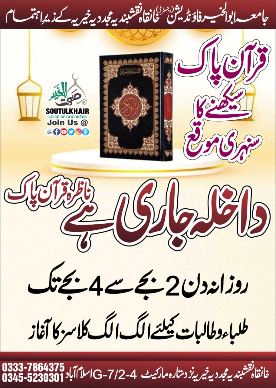 Khanqah e Naqshbandiya Mujaddida Khairia Street No 55, House No 185, Sector G-7/2-4 Islamabad, Pakistan